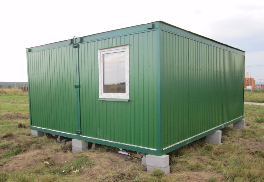 - Установите бытовку, проверьте ещё раз горизонтальность.